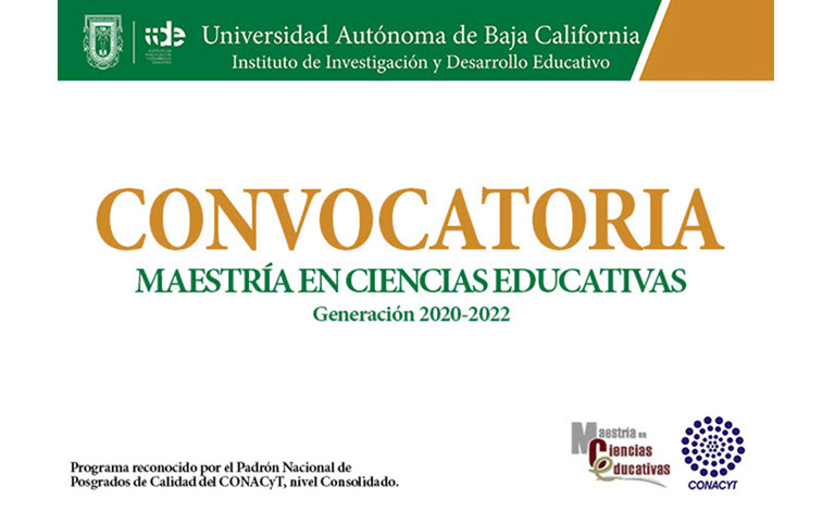 El Instituto de Investigación y Desarrollo Educativo (IIDE) de la Universidad Autónoma de Baja California (UABC) campus Ensenada, emitió la convocatoria para el ingreso a la Maestría en Ciencias Educativas (MCE), generación 2020-2022, cuyas clases serán iniciadas en septiembre del presente año.