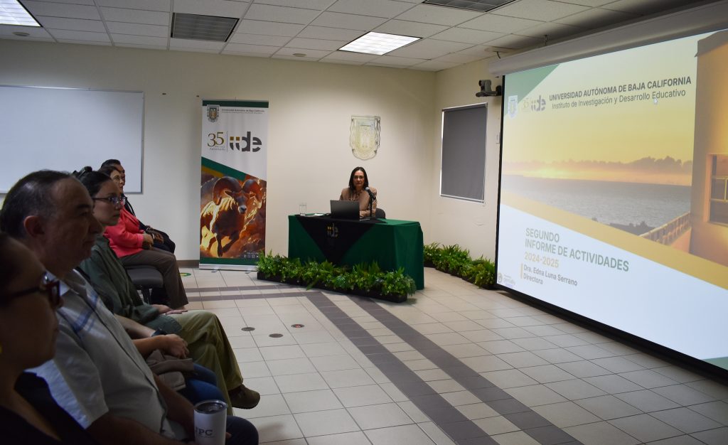 El pasado 09 de diciembre del presente año, la doctora Edna Luna Serrano, directora del Instituto de Investigación y Desarrollo Educativo (IIDE), presentó su segundo informe de actividades, correspondiente al periodo que comprende del 04 de diciembre de 2024 al 04 de diciembre de 2025, conforme a la fracción XII del Artículo 148 del Estatuto General de la Universidad Autónoma de Baja California (UABC).