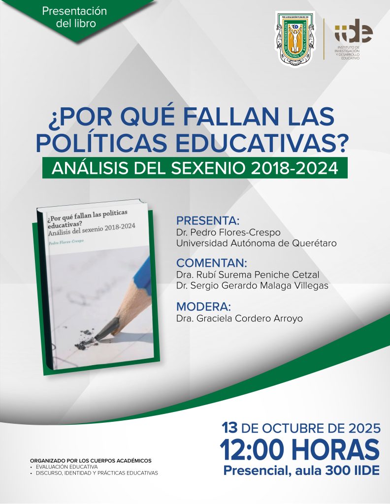 Los Cuerpos Académicos: Evaluación Educativa y Discurso, Identidad y Prácticas Educativas invitan a la presentación del libro: