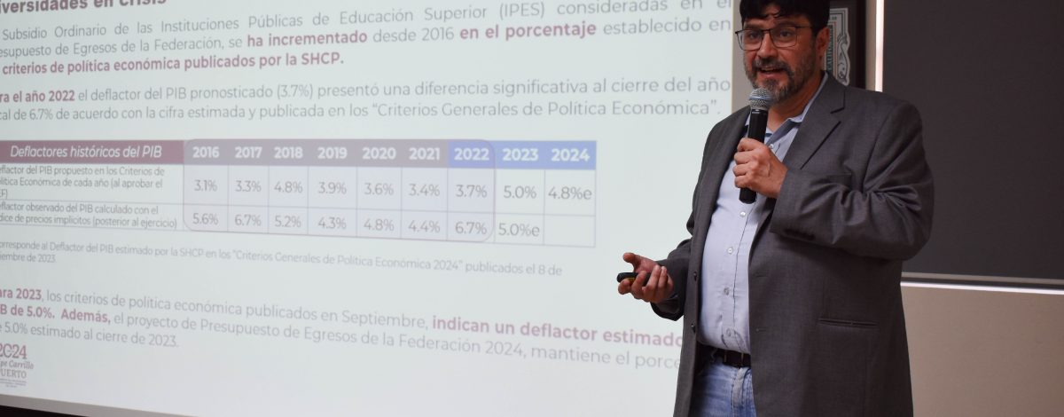 El pasado 01 de marzo el doctor Eduardo Gerardo Rosas González, Director de Fortalecimiento Institucional de la Dirección General de Educación Superior Universitaria e Intercultural (DGESUI) de la Subsecretaria de Educación Superior del Gobierno Federal, impartió la conferencia ‘‘Causas estructurales que conducen a la precarización financiera en las universidades públicas estatales’’.